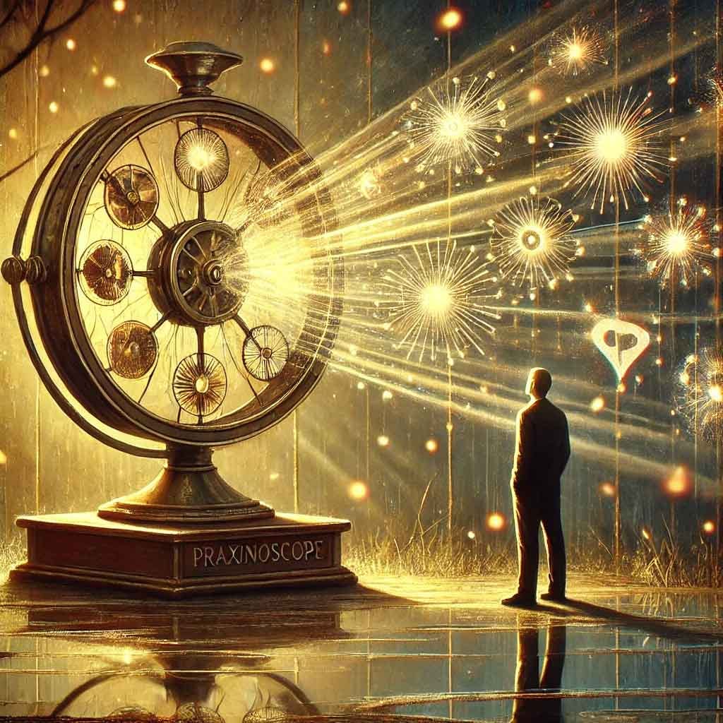 I'm on the sunny side of the train that runs along the canal between Utrecht and Amsterdam. The light is low at this time in the morning and for this time of year, barely above freezing. Beams of light bouncing on the water with the trees create a flickering effect reminiscent of the early animation machines.
